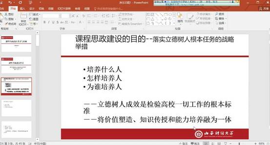 本次研讨会是积极贯彻教育部《高等学校课程思政建设指导纲要》文件精神的具体落实,加深了教师之间的经验分享与交流,有助于我校课程思政建设工作的深入推进。