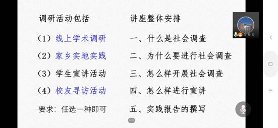 为了全面、有效地指导学生开展暑期社会实践活动,2020年7月5日晚上,国民经济管理系举行社会实践活动专题讲座,主讲人为国民经济管理系主任李春生,国民经济管理系全体老师、辅导员马燕萍老师、赵梦璇老师和2017、2018、2019三个年级的所有同学参加了本次活动。