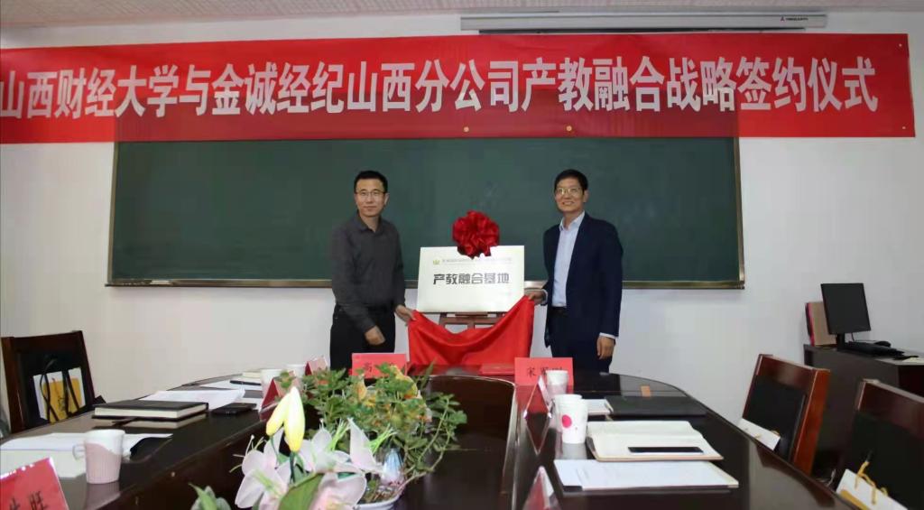 副院长刘生旺与金诚国际保险经纪有限公司山西分公司经理宋军刚共同为产教融合基地揭牌。