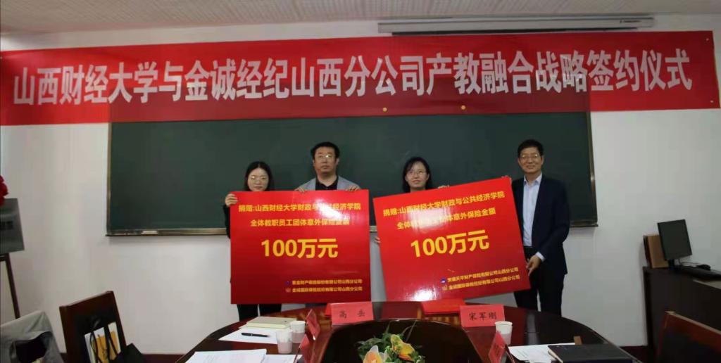 与金诚国际保险经纪有限公司山西分公司于坞城校区育才楼405会议室举行产教融合战略签约仪式。学院领导、教师及学生代表、金诚国际山西分公司相关负责人参加了签约仪式。