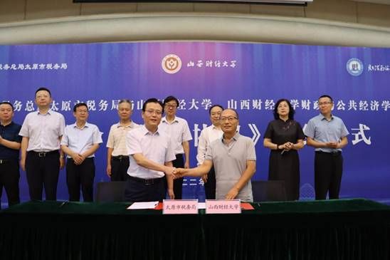 党委常委、副校长沈沛龙,国家税务总局山西省税务局党委委员、副局长马红岩等校税双方领导出席签约仪式并为共建基地揭牌。