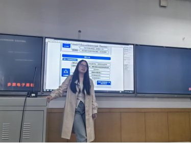 焦辰彤和陈奕萌同学,是我校大学生创新创业训练项目国家级立项负责人。焦辰彤同学从考研推免、组织管理经验、语言表达等方面阐述了参加各类创新创业类项目的重要意义,鼓励学院学生们积极参加创新创业比赛。同时结合自身经验,就组队队员选择、项目构思与选题、撰写商业计划书、制作项目汇报PPT等方面进行了讲解。