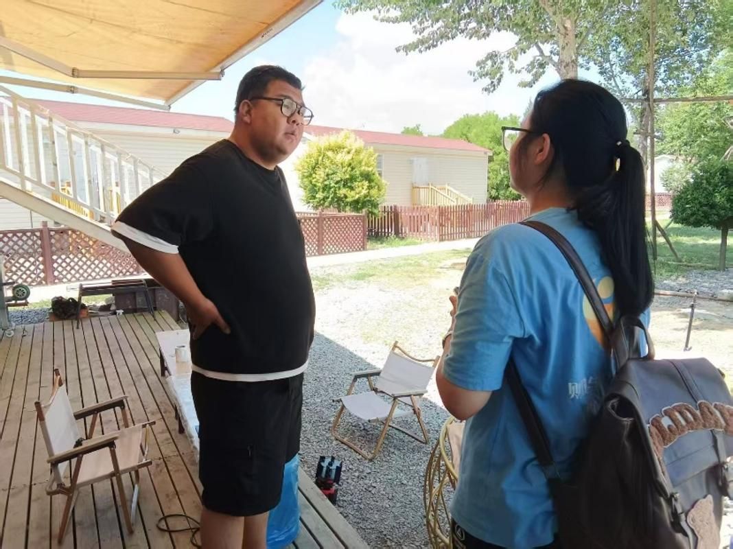 6月29日下午1点,实践队走进中隐·露营美宿,在负责人牛大哥的带领下了解以“民宿+农场”为核心的综合性乡村文旅项目。在民宿建设方面,南留南村党组织通过政策支持,给予经营主帮助,加大宣传力度,让更多的村民加入到民宿工作中,不仅提供了就业机会而且促进了良好的邻里关系。