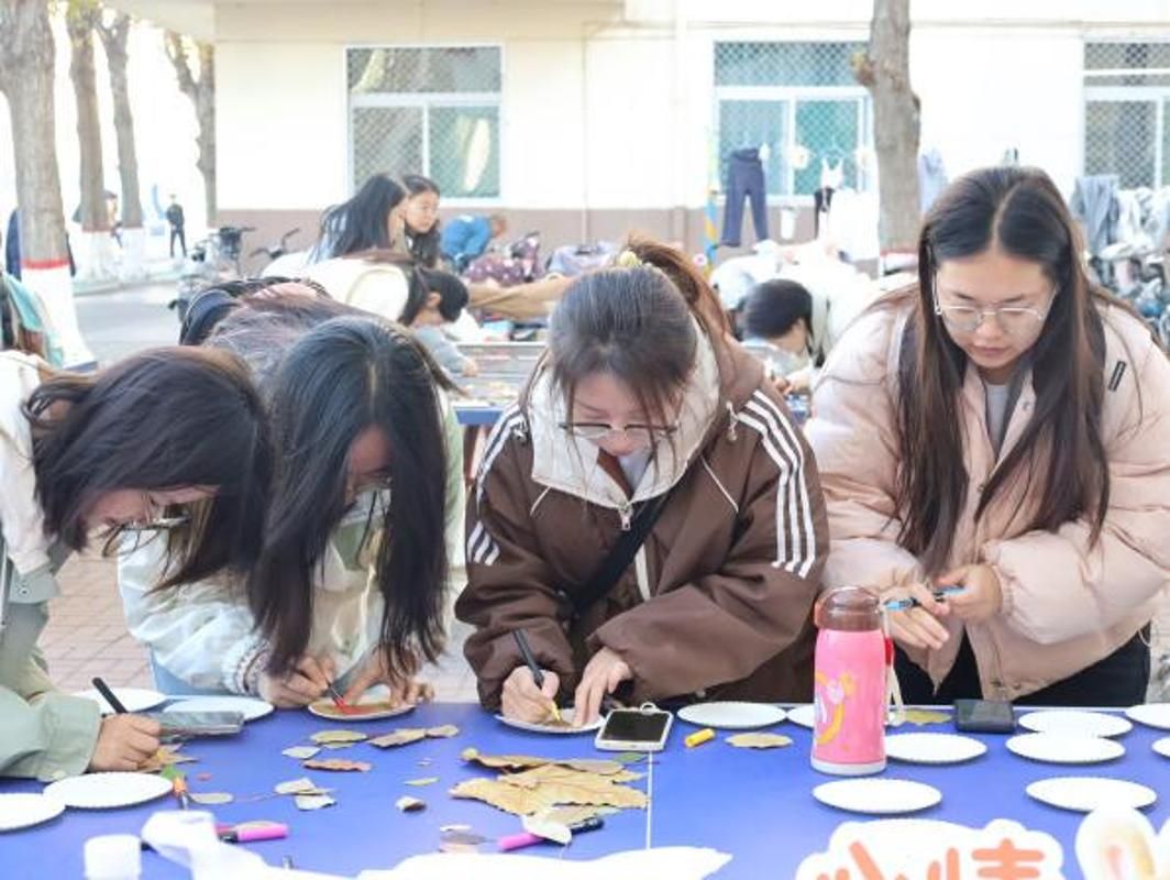 在学校坞城校区韶华里、春华里、芳华里、风华里四个社区开展“解压调色盘”一站式学生社区主题活动。活动通过让学生在调色盘和树叶上绘画释放压力,陶冶情操。学院全体院领导、辅导员和2023级、2024级本科生共500余人参加了此次活动。