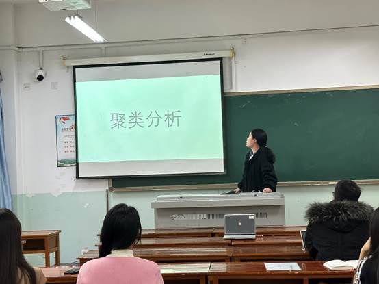 韩冰同学以《聚类分析》为主题,基于不同的角度详细地进行了分类:基于划分的聚类、基于层次的聚类、基于密度的聚类、基于网格的聚类和基于模型的聚类。聚类分析被广泛应用于银行、零售和保险等众多领域,有利于制定更有效的管理策略以及优化投资组合。康老师进一步向大家介绍了其中具体方法的应用,强调了实践的重要性,同学们都受益良多。