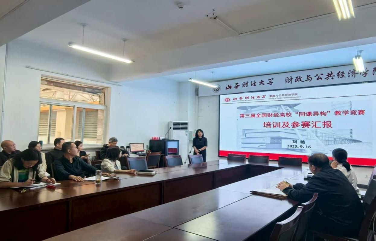 刘艳老师于学院会议室,为全院教师进行了题为“第三届全国财经高校‘同课异构’教学竞赛培训及参赛汇报”的讲座。